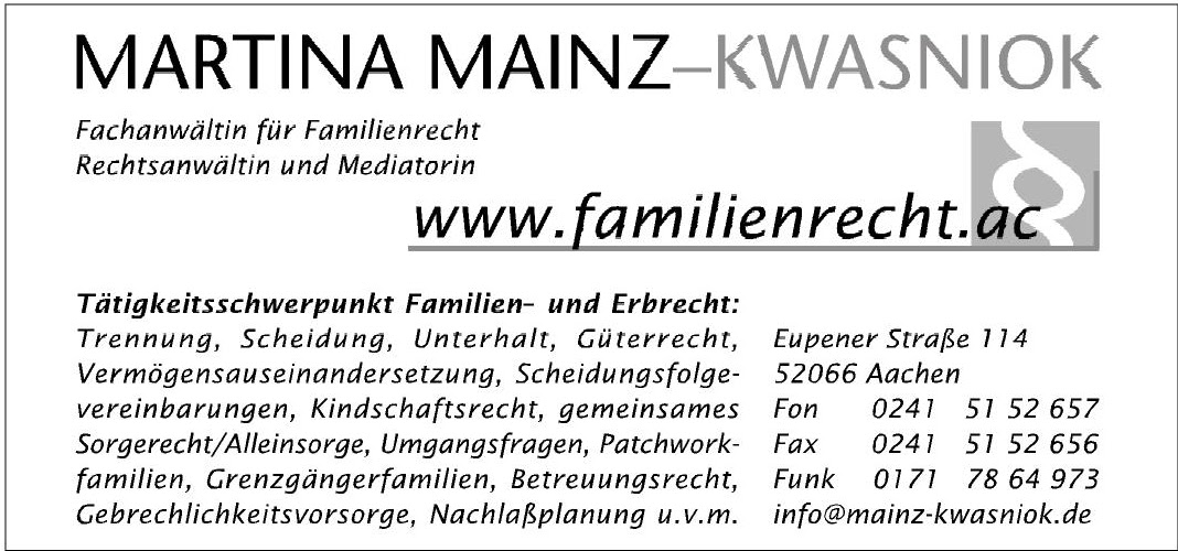 Familienrecht: Rechtsanwältin Martina Mainz-Kwasniok in Aachen
